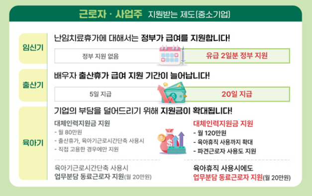 사업주는 출산휴가 동안 직원에게 급여를 지급해야 하지만, 정부에서 일부 지원을 받을 수 있는 제도가 있습니다.