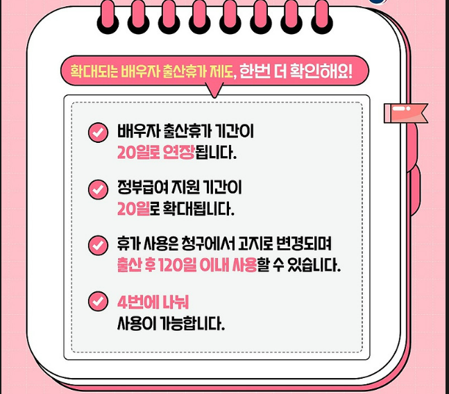 ✅ 배우자 출산휴가는 2025년부터 20일로 확대되며, 정부 지원금이 늘어날 예정
