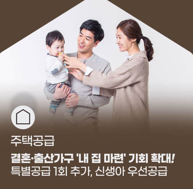 결혼·출산가구 '내 집 마련' 기회 확대! 공공분양 일반공급의 50% 신생아 가구 우선