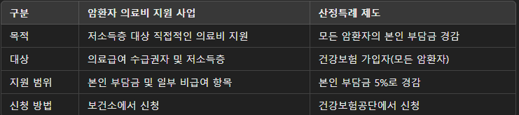 암환자 의료비 지원 사업과 산정특례의 차이점