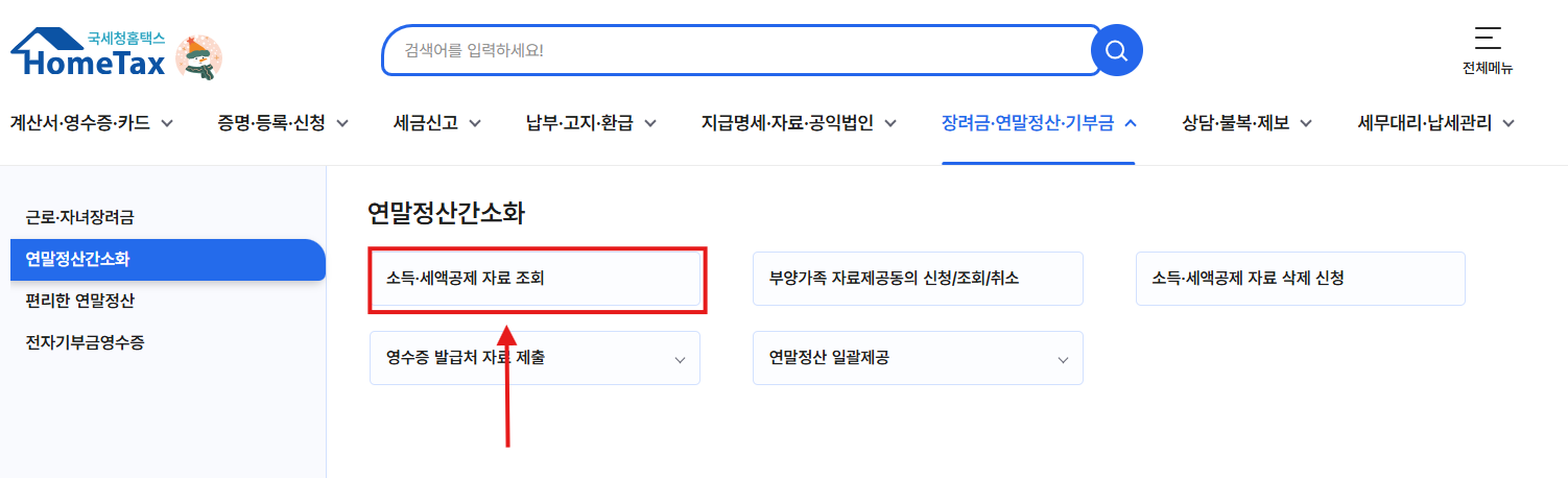 - 홈택스 접속 → 연말정산 간소화