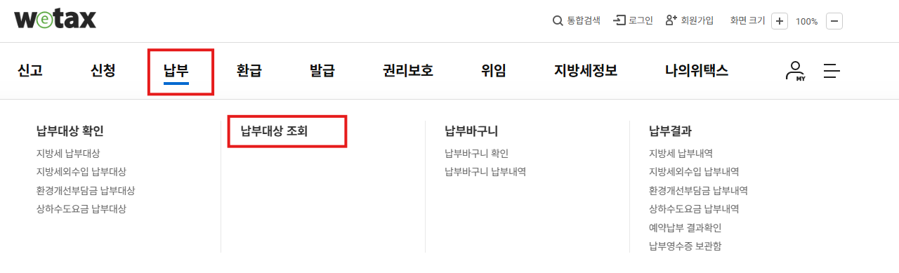 ✔ 1) 위택스(Wetax) 조회